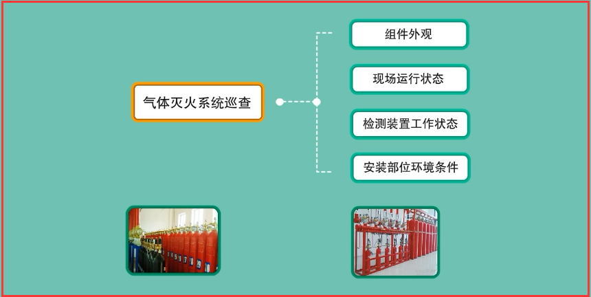 系統(tǒng)巡查是對(duì)建筑消防設(shè)施直觀屬性的檢查。氣體滅火系統(tǒng)巡查主要是針對(duì)系統(tǒng)組件外觀、現(xiàn)場(chǎng)運(yùn)行狀態(tài)、系統(tǒng)檢測(cè)裝置工作狀態(tài)、安裝部位環(huán)境條件等的日常巡查。