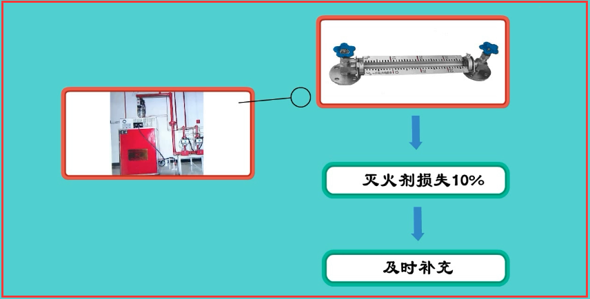 (1)對(duì)低壓二氧化碳滅火系統(tǒng)儲(chǔ)存裝置的液位計(jì)進(jìn)行檢查,滅火劑損失10%時(shí)應(yīng)及時(shí)補(bǔ)充。