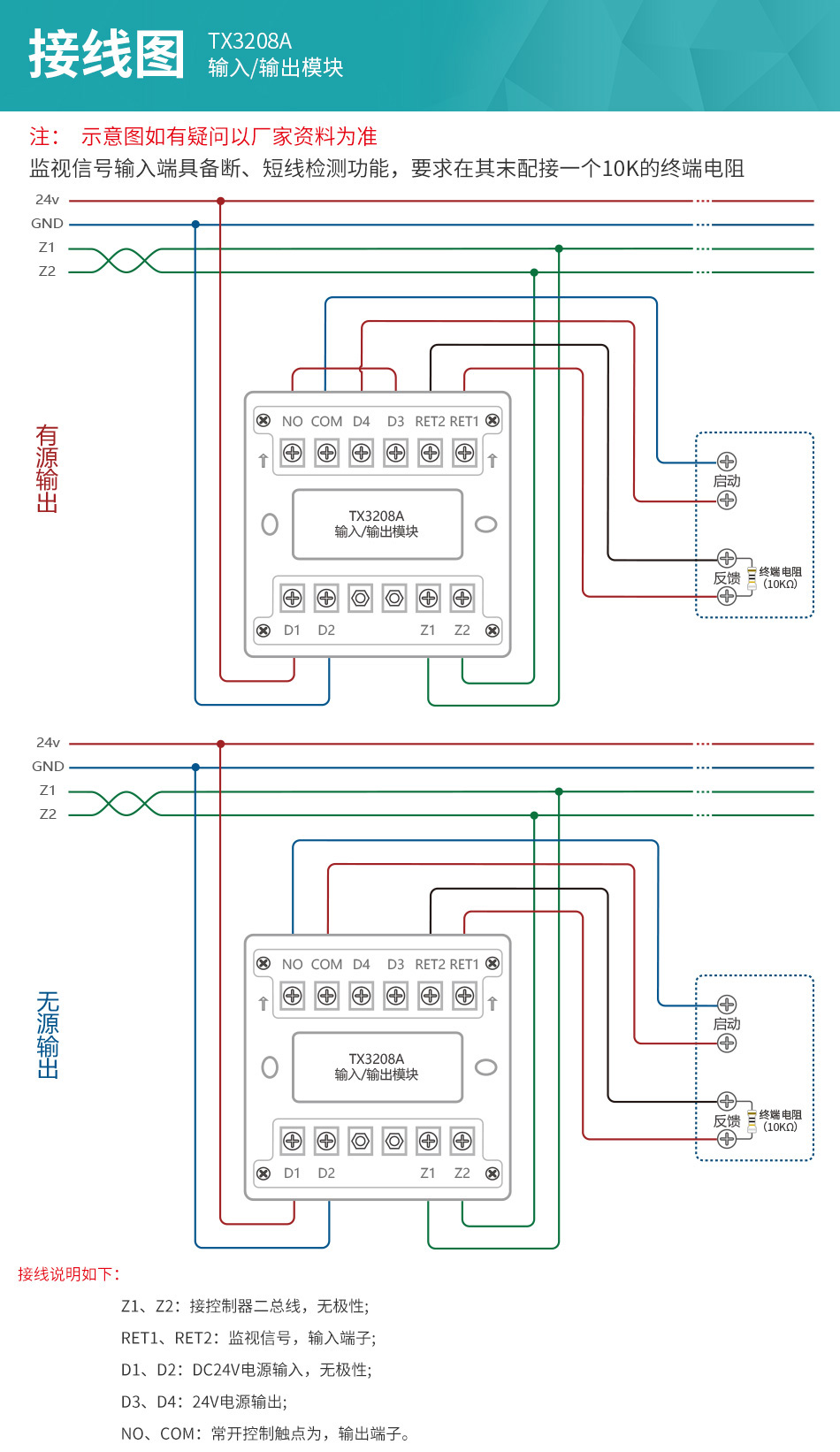 泰和安TX3208A輸入輸出模塊接線圖