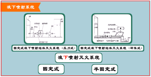 泡沫從液面下噴入被保護(hù)儲(chǔ)罐內(nèi)的滅火系統(tǒng)。