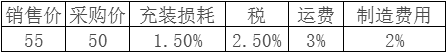那么,我們真的沒有一個(gè)相對(duì)簡單容易操作的辦法來大致分辨產(chǎn)品質(zhì)量嗎?我認(rèn)為是有的,拿藥劑來說吧,如果藥劑廠商出廠價(jià)假設(shè)是50元每公斤,設(shè)備廠家銷售價(jià)格是55每公斤,那么藥劑可能是真藥劑且按設(shè)計(jì)要求充裝嗎?作為專業(yè)人士我給大家作個(gè)簡單計(jì)算,見下表